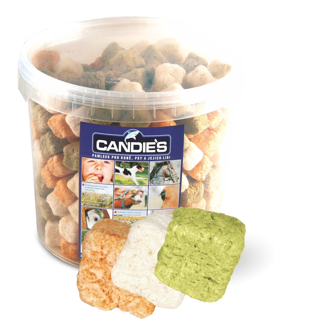 Barevné kostky - křehký nízkokalorický snack ve tvaru kostky, určen hlavně pro koně a velká zvířata.