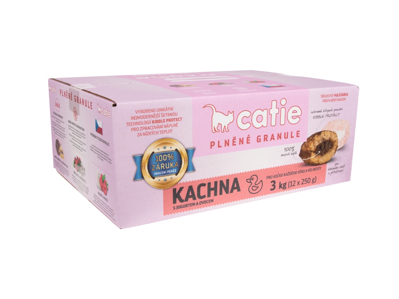 Jedinečný koncept suchého krmiva ve formě třívrstvé masem PLNĚNÉ GRANULE. Technologie přípravy masa a ochrany živin KIBBLE PROTECT umožňuje zpracování masové náplně (66%) při nižších teplotách. CATIE je moderní krmivo nejvyššího standardu vhodné pro kočku každého věku a velikosti.
