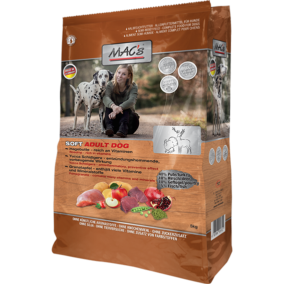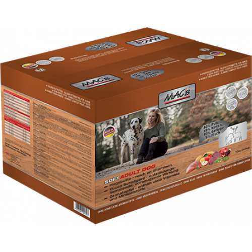 Měkké granule s intenzivní chutí a vůni, pro psy mlsné a vybíravé, pro obtížně krmitelné a starší psy, pro psy s poruchami přijmu potravy. Řeší potíže s bolavými zuby, citlivým žaludkem, s blinkáním u štěňat a s hltáním nerozkousané potravy.